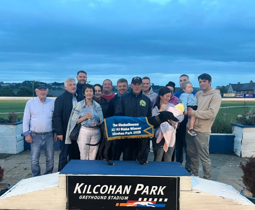 Pic below: Congratulations to Matthew Scurry and Family, who won the Final of the Shebetheone A2/A3 Stake tonight, with Scrahan Lady producing a fantastic career best run of 28.32. The event was kindly sponsored by Leo and Kate Dunphy.