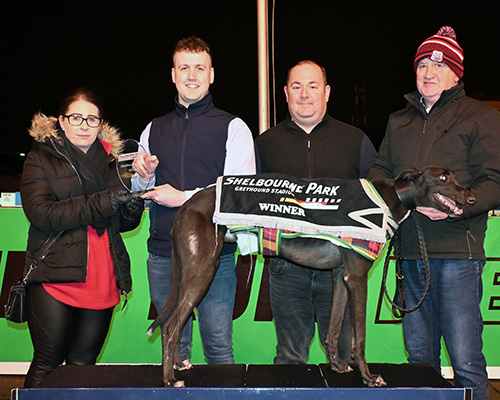 Dolores Ruth’s son of Ballymac Best and Boylesportstwink was in electric form, shooting from five to quickly establish complete control. Odds-on favourite Skidrow Joe was soon second but he would never get close enough to land a telling blow and faded home to fall further back.