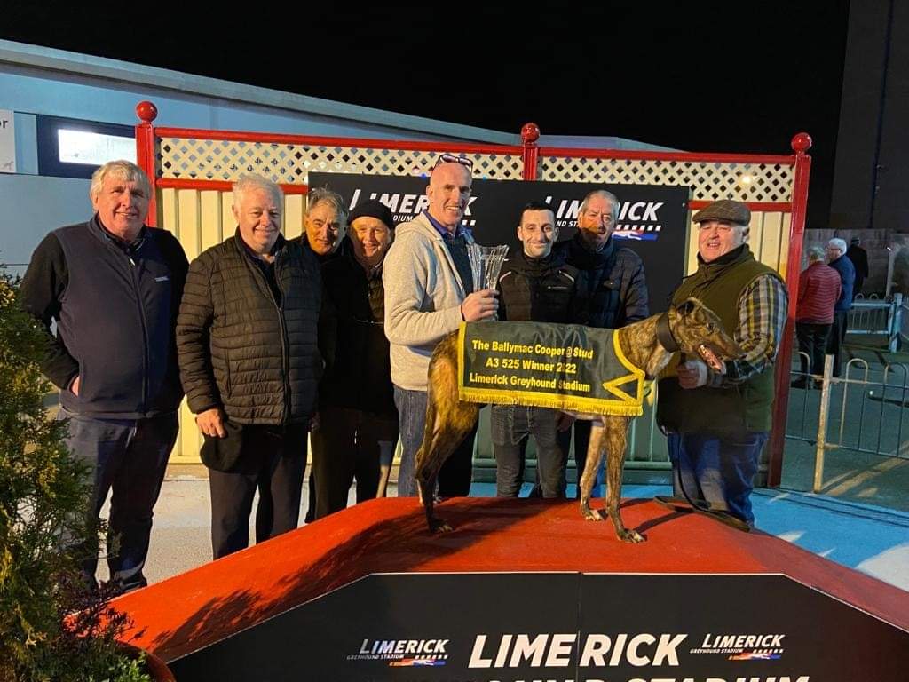 The Ballymac Cooper @ Stud A3 525 has proved the perfect curtain raiser to 2022 at Limerick Greyhound Stadium and the €3,000 decider was polished off in tremendous fashion last night as Toolmaker Beach built on his semi final victory with another brilliant performance for owner William Hyslop.