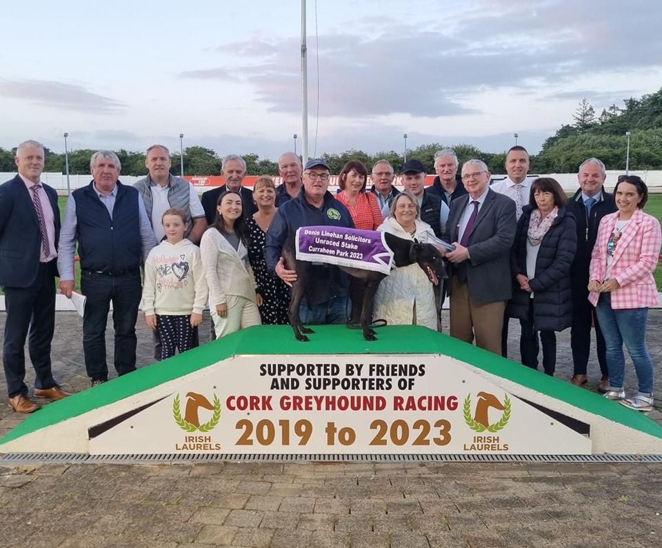 Droopys Flytline (Laughil Blake-Droopys Curio) recorded four straight wins in the final of the €5,000 to the winner Denis Linehan Solicitors Unraced Stake at Curraheen Park on Saturday night.
