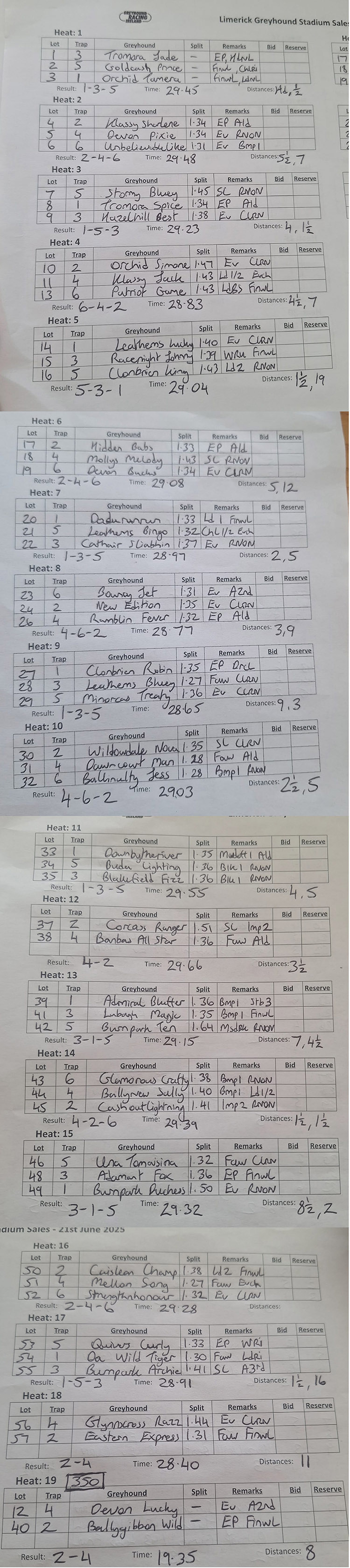 LIMERICK SALES TRIAL RESULTS SATURDAY 21/06/2025