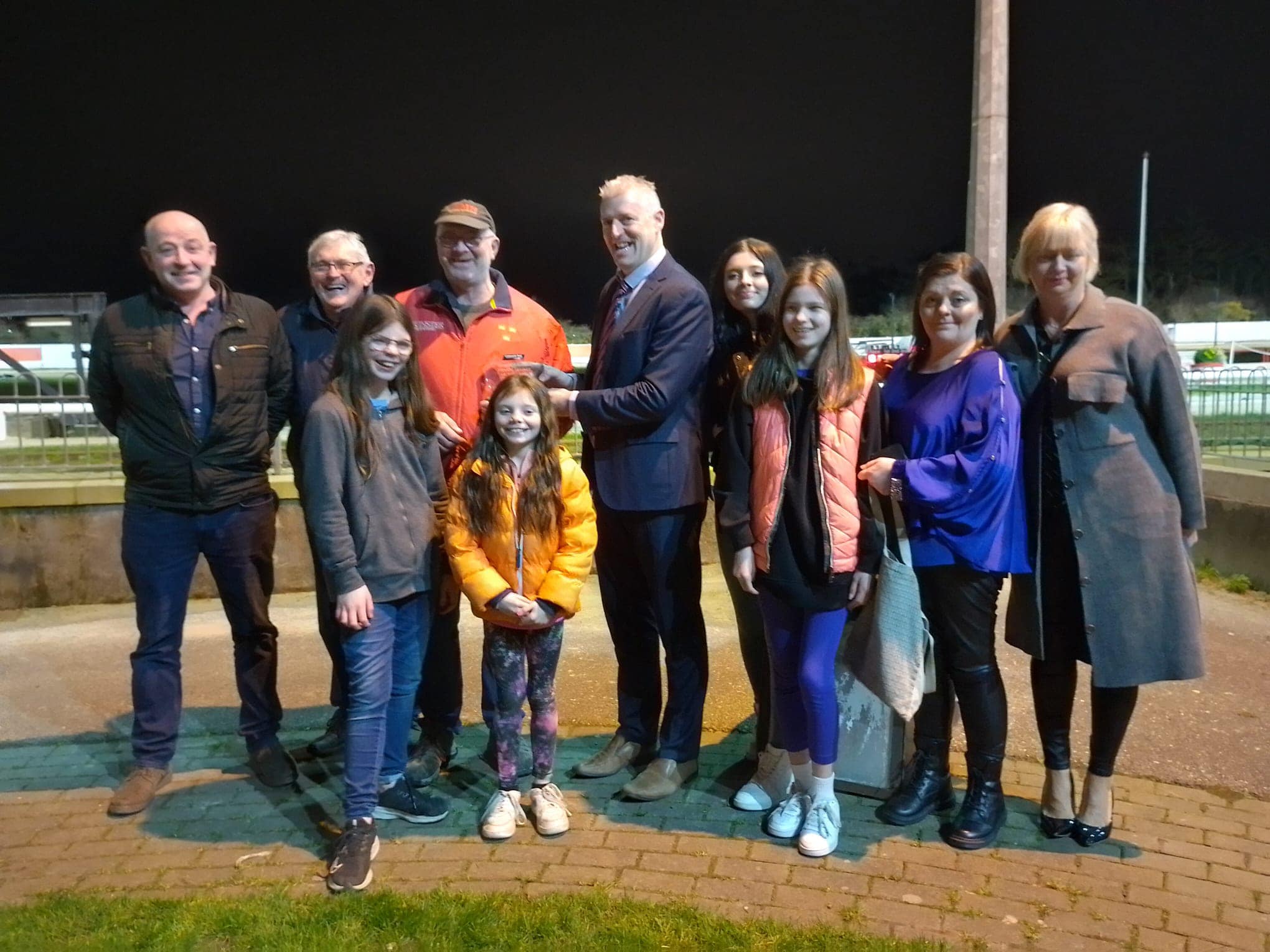 It was a great night all round for the Kieran Lynch team, the talented trainer won the feature on the night, Trouble running out a brilliant winner of the €4,500 Time Greyhound Nutrition Cork Cup. Lynch also picked his award for leading trainer for 2022. Kieran hit a total of 56 winners for the year at Curraheen Park.