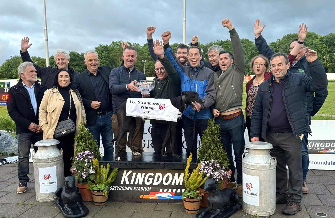 Dashing Toro (Droopys Sydney-Ballycowen Lucy) was the star of the show in the Kingdom on Saturday night as the 5-2 winner took gold in the final of the €10,000 to the winner Lee Strand 550. The August puppy had run some big races in the event over the last couple of weeks and the exciting young tracker was best in the feature final, winning for the Twice-A-Day-Everyday-Syndicate. Cheap Sandwiches set a strong early gallop up front and it looked like Unanimouspanther was in prime position heading down the back straight. However, it soon all changed and the eye was drawn to Dashing Toro from about halfway. Pulling out all the stops in the second half of the race, the powerful running winner put on a huge finish to score, beating the early-paced runner up, by a length and a half, in a fantastic, 29.54. (550). All eyes will be on the winner in the coming weeks and months as he looks to have a bright future.