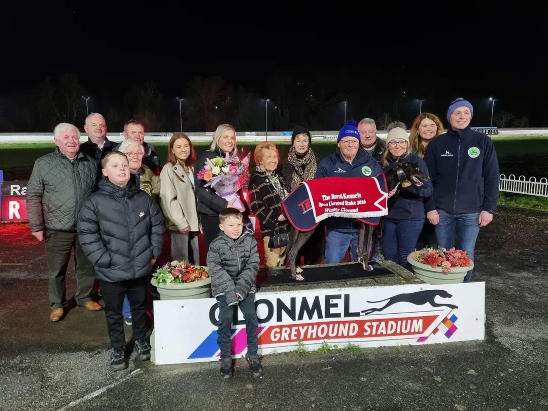 Kindly sponsored by Helen O’Dwyer, the 2026 renewal of this prestigious stake once again lived up to expectations. Newinn Spot had been the standout performer throughout the competition, producing electric early pace and repeatedly breaking the 16-second sectional. However, having been forced to settle for second behind ‘Spot’ in the semi-finals, kennel companion Gaytime Clyde turned the tables when it mattered most to hand owner Brendan O’Connell a memorable success.