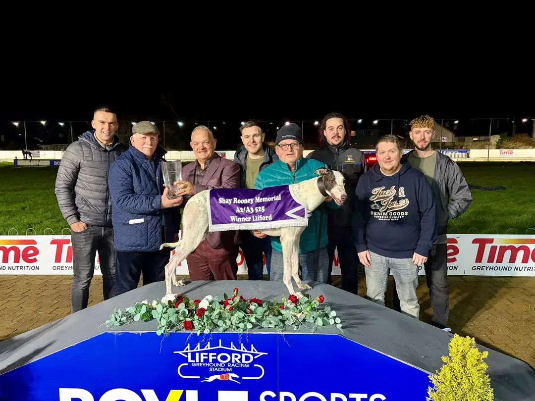 The €4,000-to-the-winner Shay Rooney Memorial 525 came to a fitting conclusion at Lifford Stadium on Saturday night, with the Michael Taggart-trained Zenith Wizard producing a fine performance to land the feature final.